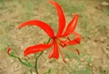 山丹是百合科百合属的多年生草本植物。鳞茎卵形或圆锥形,鳞片长圆形或长卵形,白色;叶散生茎中部,线形,边缘有乳头状突起;花单生或数朵成总状花序,花鲜红色,常无斑点,花被片反卷,…全部>>