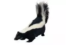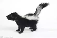 臭鼬是食肉目鼬科鼬属哺乳动物。体型与家猫相仿。全身被毛为黑色,身体两边有白色条纹;前额有一条较窄的白色条纹;尾巴呈丛毛状,有时尖端为白色。寿命为7—8年。臭鼬广泛分布在北美洲墨西哥以北的广大地区,…全部>>