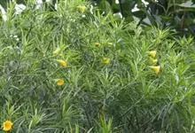 黄花夹竹桃K. Schum.),又名“酒杯花”“柳木子”“黄花状元竹”,是夹竹桃科,黄花夹竹桃属下的常绿乔木植物。高达5m,全株无毛,树皮棕褐色;叶互生,近革质,线形或线状披针形;花大,黄色,具香味,…全部>>