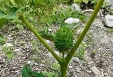 曼陀罗,茄科曼陀罗属一年生大型草本植物,全株光滑。有臭气;叶呈广卯形,边缘具不规则波状浅齿裂;花单生于枝杖间或叶腋,直立,有短梗;花萼是筒状裂片三角形,颜色为白色或淡紫色;果实为蒴果卵状,…全部>>