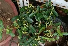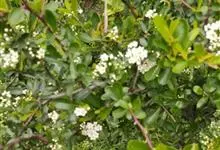 火棘 H. L. Li)是蔷薇科火棘属常绿灌木,老枝呈暗褐色;叶片呈倒卵形,边缘有钝锯齿,齿尖向内弯,两面皆无毛;叶柄短,无毛或嫩时有柔毛;花序是复伞房状,花瓣呈白色近圆形;果球近圆形,…全部>>