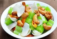 西芹炒腰果是一道由西芹,熟腰果,胡萝卜等做成的美食。全部>>
