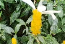 金苞花是爵床科、金苞花属的常绿草本植物。叶长圆形或披针形,先端渐尖,基部通常楔形,下面主脉被微柔毛;顶生穗状花序由密、短的总花梗组成,卵形苞片膜质,下部的近心形,小苞片披针形或匙形,与花萼等长,…全部>>