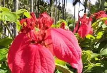 红纸扇是茜草科玉叶金花属植物。为多年生常绿灌木。植株高1.5-2米,树冠广圆形,分枝多,茎干绿色至深褐色。叶宽卵圆形,亮绿色,中脉及例脉密生红线毛,长8-15厘米。…全部>>