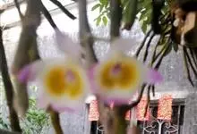 玫瑰石斛是兰科石斛属的多年生附生草本植物。茎斜下或下垂,青绿色,圆柱形,节间鞘具绿或白色相间的条纹;叶窄披针形;花序短,生于已落叶的老茎上部,花序梗长,萼片和花瓣白色,上部带淡紫色,干后蜡质状,…全部>>