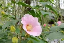 芙蓉葵是锦葵科木槿属植物,又名草芙蓉、大花秋葵,原产于北美。落叶灌木状。叶大、广卵形,叶柄、叶背密生灰色星状毛。花大,单生于叶腋,有白、粉、红、紫等色。喜阳、略耐阴,宜温暖湿润气候,忌干旱,耐水湿,…全部>>