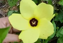 黄葵是锦葵科秋葵属的一年生或二年生草本植物。植株高1-2米,被粗毛;叶通常掌状深裂,裂片披针形至三角形,边缘具不规则锯齿,偶有浅裂似械叶状,两面均疏被硬毛,叶柄疏被硬毛;花单生于叶腋间,…全部>>