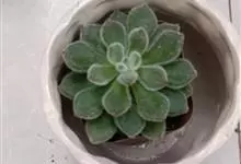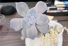 芙蓉雪莲是景天科拟石莲花属的植物。由于叶片表面覆盖着一层厚霜粉,通常呈现出白色;日照增多,温差增大后叶缘、叶尖会呈现出粉红色或橙红色。…全部>>