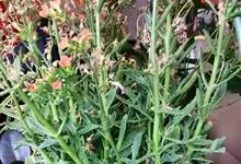 伽蓝菜是景天科伽蓝菜属植物。多年生草本,高20-100厘米。叶对生,中部叶羽状深裂,全长8-15厘米,裂片线形或线状披针形。聚伞花序排列圆锥状,长10-30厘米;苞片线形。花期3月。…全部>>
