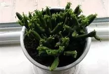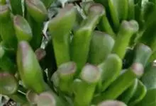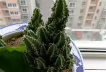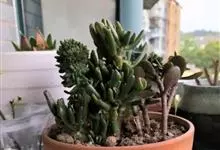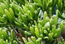筒叶花月,是景天科青锁龙属的多年生草本植物。植株多分株,灌木状,茎较粗壮,圆柱形,表皮灰褐色;叶片肉质,互生,呈圆筒状,簇生于茎或分枝顶端,叶端呈斜截形,截面为椭圆形;花呈星状,淡白色;花期秋季。…全部>>