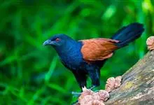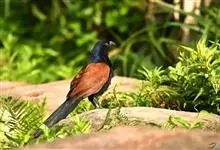 褐翅鸦鹃,是鹃形目鸦鹃科鸦鹃属的鸟类。褐翅鸦鹃的身体为黑色;头颈和胸带蓝紫色金属光泽并具黑亮的羽干纹,下胸至腹部泛金属绿光泽;两翼和肩部为棕栗色,外侧飞羽具暗色羽端,尾羽闪铜绿色光泽;虹膜赤红色,…全部>>