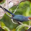 绿嘴地鹃:体形似小鸦鹃,但羽色大致绿灰;嘴绿色,头侧眼的周围有一裸区;后爪弯曲。虹膜赤红色,眼外周裸露皮肤繁殖期为赤红色,非繁殖期为暗红色。嘴绿色,基部及先端色暗,近嘴角处常沾红色,非繁殖期下嘴黄褐色,…全部>>