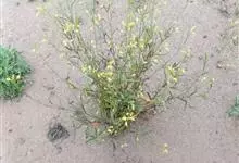 乌塌菜是十字花科芸苔属草本植物。乌塌菜的基生叶密生成莲座状,圆卵形或倒卵形,厚而皱缩,深绿色;上部叶近圆形或圆卵形,全缘,抱茎。花呈淡黄色,长角果呈圆柱形,种子呈圆球形,深褐色。花期3—4月,果期5月。…全部>>