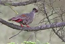 血雉雉科血雉属鸟类,别名血鸡、松花鸡,血雉的雄鸟大覆羽、尾下覆羽、尾上覆羽、脚、头侧、腊膜为红色,故称血雉。其别名甚多,各地皆异。在甘肃,因其胸侧和翅上覆羽沾绿,被称为“绿鸡”;因其羽毛形似柳叶,…全部>>