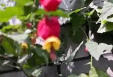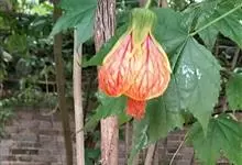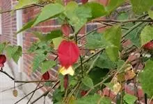 红萼苘麻是锦葵科、苘麻属常绿软木质灌木,叶绿色,长5-10厘米,心形,叶端尖,叶缘有钝锯齿,有时分裂,有细细的叶柄;叶互生,掌状叶脉;花单生于叶腋,具长梗,下垂;花萼红色,半套着大约4厘米长的花瓣,…全部>>