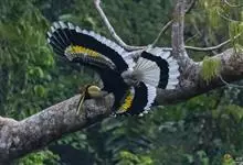 马来犀鸟是一种犀鸟。因嘴形粗厚而直,嘴上通常具盔突,形似犀牛角而得名。并趾型,外趾和中趾基部有三分之二互相并合,中趾与内趾基部也有些并合,善于攀援。每年入春后约5~6月由群居转为成对,选择高大树干距…全部>>