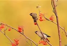 太平鸟又名十二黄,是雀形目太平鸟科太平鸟属鸣禽。雄鸟额及头顶前部栗色,头顶后部及羽冠灰栗褐色;上嘴基部、眼先、围眼至眼后形成黑色纹带;背、肩羽灰褐色,腰及尾上覆羽褐灰至灰色,愈向后灰色愈浓;尾羽黑褐色,…全部>>