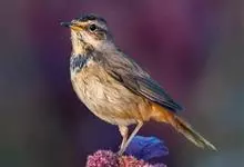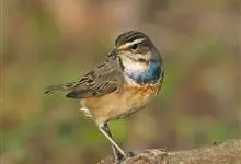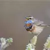 蓝点颏亦称“蓝喉歌鸲”,通称蓝靛颏儿。身体大小和麻雀相似,体长12-13厘米,体重17-18克。头部、上体主要为土褐色。眉纹白色。尾羽黑褐色,基部栗红色。颏部、喉部辉蓝色,下面有黑色横纹。下体白色。…全部>>