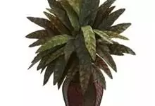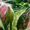 彩叶万年青 Schott)是天南星科、花叶万年青属较矮小亚灌木。茎粗壮,上升,上部直立。叶柄具鞘,绿色,具白色条状斑纹;叶片长圆形至卵状长圆形,中肋宽厚,侧脉表面下凹,花序柄短。佛焰苞骤尖,绿色或白…全部>>