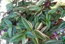 吊竹梅是鸭跖草科紫露草属的多年生草本植物;茎半肉质,柔弱披散至悬垂;叶椭圆形至长圆形,无柄,先端急尖至渐尖,基部鞘状抱茎,叶面紫绿色而杂有银白色,叶背紫色,全缘;花聚生于顶生叶状苞内,…全部>>