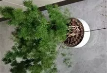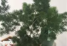 蓬莱松是天门冬科、天门冬属多年生丛生草本植物。宿存,圆柱形肉质根,纵截面为绿色和表面灰色。植株高可达3米。茎呈圆柱形或近四边形,底部木质化,具有灰色或灰褐色。幼嫩的茎在每个节上都被紫绿色鳞片包,…全部>>
