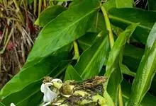 姜花又名野姜花。是姜科姜花属的多年生草本植物,茎高1-2米;叶片长圆状披针形或披针形,叶面光滑,叶背被短柔毛;穗状花序顶生,椭圆形,花芬芳,白色;蒴果卵状三棱形,微黄绿色;种子鲜红色,具橘红色的假种皮。…全部>>