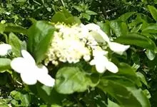 蝴蝶戏珠花 Miq.)是荚蒾科荚蒾属植物。落叶灌木,高达3米;当年小枝浅黄褐色。叶较狭,宽卵形或矩圆状卵形,有时椭圆状倒卵形。花序直径4-10厘米,外围有4-6朵白色、木型的不孕花。果实先红色后变黑色,…全部>>
