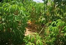 木薯,为大戟科木薯属的一种直立灌木,又名木番薯、树薯。木薯高1.5-3米;块根圆柱状。叶纸质,轮廓近圆形;裂片倒披针形至狭椭圆形;托叶三角状披针形。圆锥花序顶生或腋生,花萼带紫红色且有白粉霜。…全部>>
