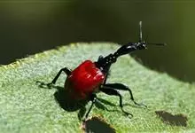 甘薯小象甲是鞘翅目蚁象科甘薯小象甲属昆虫,又称甘薯蚁象、甘薯象、番薯臭虫。成虫除触角、前胸、中胸、足为赤褐色外,鞘翅、腹部为暗蓝色,有金属光泽;体型细长,…全部>>