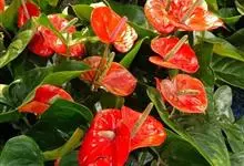 花烛,别名红鹅掌、红掌、安祖花等,为天南星科花烛属的一种多年生草本植物。其茎矮;叶互生,叶片革质,有光泽,阔心形、圆心形,先端钝或渐尖,基部深心形;肉穗花序有细长花序梗,佛焰苞深红色或橘红色,…全部>>