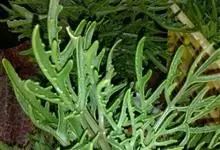 棒叶落地生根是景天科、落地生根属植物。茎直立、粉褐色。叶圆棒形,上表面有沟、粉色,有红褐斑。叶片交互对生,交叉排列成十字形。叶端锯齿上长有很小的幼株、落地后即可生根成活。原产非洲马达加斯加。…全部>>