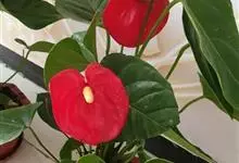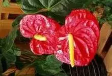 花烛,别名红鹅掌、红掌、安祖花等,为天南星科花烛属的一种多年生草本植物。其茎矮;叶互生,叶片革质,有光泽,阔心形、圆心形,先端钝或渐尖,基部深心形;肉穗花序有细长花序梗,佛焰苞深红色或橘红色,…全部>>