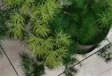 蓬莱松是天门冬科、天门冬属多年生丛生草本植物。宿存,圆柱形肉质根,纵截面为绿色和表面灰色。植株高可达3米。茎呈圆柱形或近四边形,底部木质化,具有灰色或灰褐色。幼嫩的茎在每个节上都被紫绿色鳞片包,…全部>>
