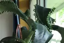伽蓝菜是景天科伽蓝菜属植物。多年生草本,高20-100厘米。叶对生,中部叶羽状深裂,全长8-15厘米,裂片线形或线状披针形。聚伞花序排列圆锥状,长10-30厘米;苞片线形。花期3月。…全部>>
