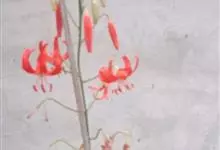 山丹是百合科百合属的多年生草本植物。鳞茎卵形或圆锥形,鳞片长圆形或长卵形,白色;叶散生茎中部,线形,边缘有乳头状突起;花单生或数朵成总状花序,花鲜红色,常无斑点,花被片反卷,…全部>>