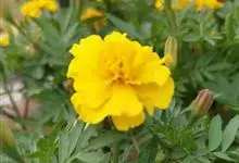 万寿菊是菊科万寿菊属一年生草本植物,别名孔雀菊、缎子花、臭菊花、西番菊、红黄草、小万寿菊、臭芙蓉、孔雀草。万寿菊茎近基部分枝。叶羽状分裂,长5-10厘米,宽4-8厘米,裂片长椭圆形或披针形,具锐齿,…全部>>