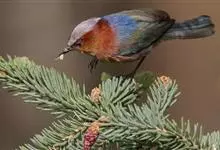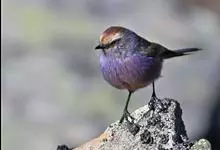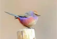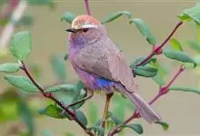 花彩雀莺:体长9-12厘米,是一种毛茸茸偏紫色的雀莺。顶冠棕色,眉纹白。尾长,羽毛松软。前额有一宽阔的眉纹淡黄色,头顶栗色或棕红色,有的具紫蓝色光泽。背灰色,腰和尾上覆羽辉紫蓝色,飞羽灰褐色。…全部>>