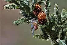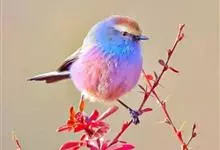 凤头雀莺:小型鸟类。体长9-10厘米,雄鸟呈毛茸茸的紫色和绛紫色,顶冠淡紫灰色,额及凤头白色,尾全蓝。雌鸟喉及上胸白,至臀部渐变成淡紫色,耳羽灰,…全部>>