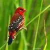 红梅花雀小型鸟类,体长9-10厘米。雄鸟通体朱红色,背、肩、胸等满布白色小斑点,两翅和尾黑褐色均具白色端斑,嘴红色,脚蜡黄色。雌鸟上体淡褐色或赭褐色,翅上中覆羽、大覆羽和内侧飞羽末端具白色斑点,…全部>>