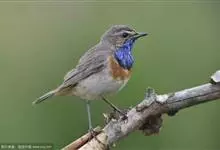 蓝点颏亦称“蓝喉歌鸲”,通称蓝靛颏儿。身体大小和麻雀相似,体长12-13厘米,体重17-18克。头部、上体主要为土褐色。眉纹白色。尾羽黑褐色,基部栗红色。颏部、喉部辉蓝色,下面有黑色横纹。下体白色。…全部>>