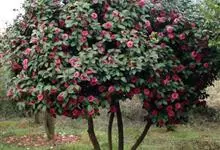 滇山茶:灌木至小乔木,有时高达15米,嫩枝无毛。叶阔椭圆形,上面干后深绿色,发亮,下面深褐色,无毛,侧脉6-7对,边缘有细锯齿。花顶生,红色,直径10厘米,无柄;苞片及萼片10-11片,花瓣红色,…全部>>