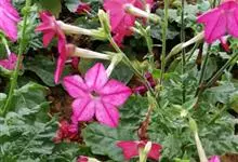 花烟草是茄科烟草属多年生草本植物。植株全体被粘毛;叶在茎下部铲形或矩圆形,基部稍抱茎或具翅状柄,向上成卵形或卵状矩圆形,近无柄或基部具耳,接近花序即成披针形;花序为假总状式,疏散生几朵花,…全部>>