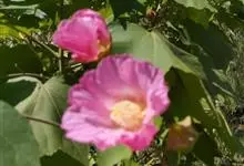 木芙蓉,锦葵科木槿属落叶灌木或小乔木。小枝上有细绒毛;叶片为卵状心形,托叶为披针形,常早落;花单生,花萼为钟形,花冠初为白色或淡红色,后逐渐变为深红色;果实为扁球形,有淡黄色的毛附着。花期8到10月。…全部>>