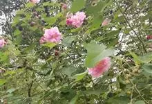 木芙蓉,锦葵科木槿属落叶灌木或小乔木。小枝上有细绒毛;叶片为卵状心形,托叶为披针形,常早落;花单生,花萼为钟形,花冠初为白色或淡红色,后逐渐变为深红色;果实为扁球形,有淡黄色的毛附着。花期8到10月。…全部>>