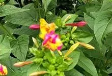 即紫茉莉,英文名:Four-o'clock,Marvel of Peru,为紫茉莉科、紫茉莉属多年生草本植物,一年生栽培。株高50~80cm。根粗壮,茎多分枝而散生。叶对生,卵形或心脏形。花数朵簇生…全部>>