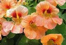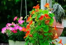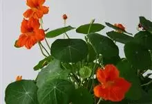 旱金莲是旱金莲科旱金莲属蔓生一年生草本植物。叶互生,叶柄向上扭曲,盾状,叶圆形,具波状浅缺刻,下面疏被毛或有乳点;花黄、紫、桔红或杂色,花托杯状,花瓣为圆形,边缘具缺刻;果实为扁球形;花果期6-10月,…全部>>