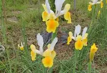 黄花鸢尾:多年生草本,植株基部有老叶残留的纤维。根状茎粗壮,斜伸;须根黄白色,少分枝,有皱缩的横纹。叶基生,灰绿色,宽条形,有3-5条不明显的纵脉。花茎中空,高50-60厘米,…全部>>