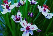 花蔺,为花蔺科花蔺属多年生水生草本。根茎粗壮横生。叶基生,上部伸出水面,线形,三棱状,基部成鞘状。 花:花茎圆柱形,直立,有纵纹。花两性,成顶生伞形花序。外轮花被3,带紫色,宿存;内轮花被3,淡红色…全部>>