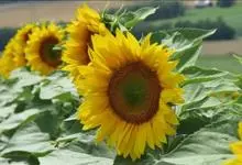 向日葵:是桔梗目、菊科、向日葵属的植物。因花序随太阳转动而得名。是一年生高大草本植物。茎粗壮,高1-3米,不分枝或有时上部分枝,被白色粗硬毛。叶互生,卵状心形或卵形,顶端急尖或渐尖,基生3出脉,…全部>>