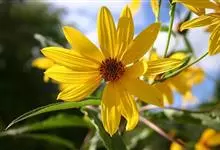 菊芋菊科向日葵属多年宿根性草本植物。高1-3米,有块状的地下茎及纤维状根。茎直立,有分枝,被白色短糙毛或刚毛。叶通常对生,有叶柄,但上部叶互生;下部叶卵圆形或卵状椭圆形。头状花序较大,少数或多数,…全部>>